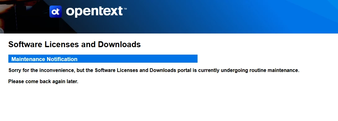 I am trying to get to the download section to download ChangeMan ZMF v8r3p01 software suite. I get the below results for several days now.