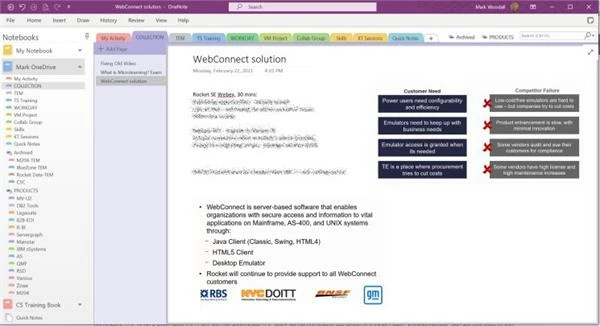 Below is what I use in one of my dumping-group OneNote notebooks (COLLECTION is my default initial capture section)- I also have a sub-section for pages on each Rocket product, which is a very basic level of categorization.