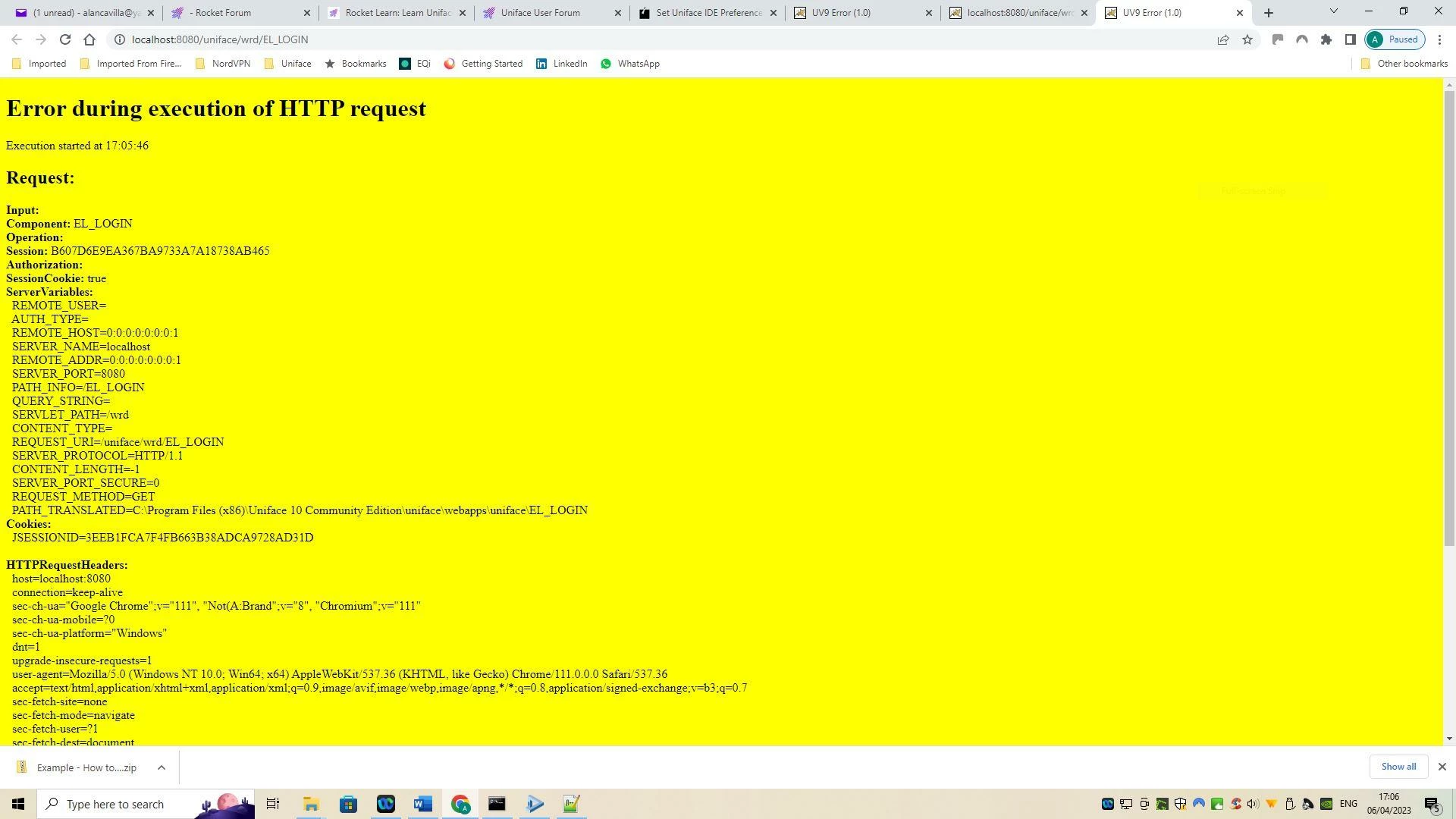 I am using a seperate URL http://localhost:8080/u10learn instead of the default http://localhost:8080/uniface