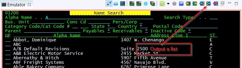 In my next step in my recording I will now press the button on the toolbar to output a list: