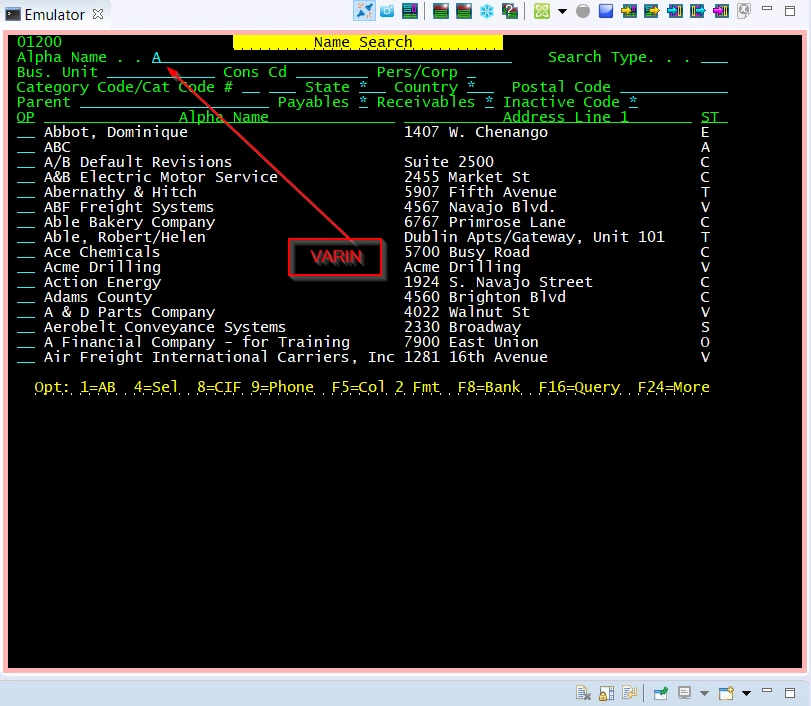 So here is a scenario here where I have a list and on the screenshot below you will see I created a VARIN for AlphaName. I have then pressed ENTER to return a list of names: