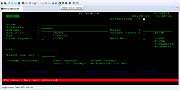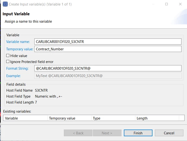 4. For each field you can now create an input variable name. This can differ from your system screen map field name so you can use a more friendly input variable name.