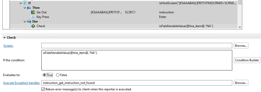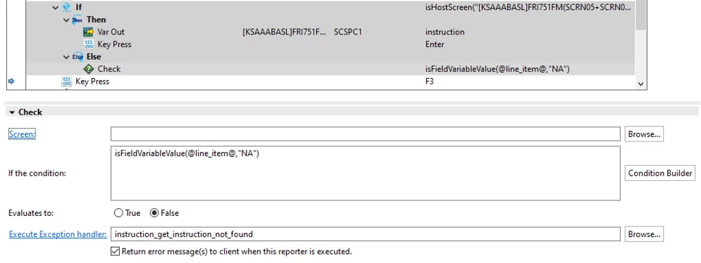 I'm having difficulty getting the condition in the check statement calling my exception handler. Neither of these call it...is there something else I'm missing? It doesn't matter if I specify the result should be true or false, it advances to the next instruction and does not call the exception handler: