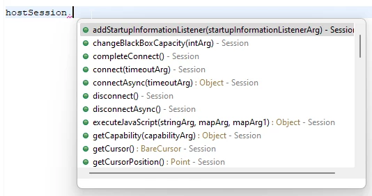 And afterwards, when using the . only after e.g. hostSession, this should already show the options: