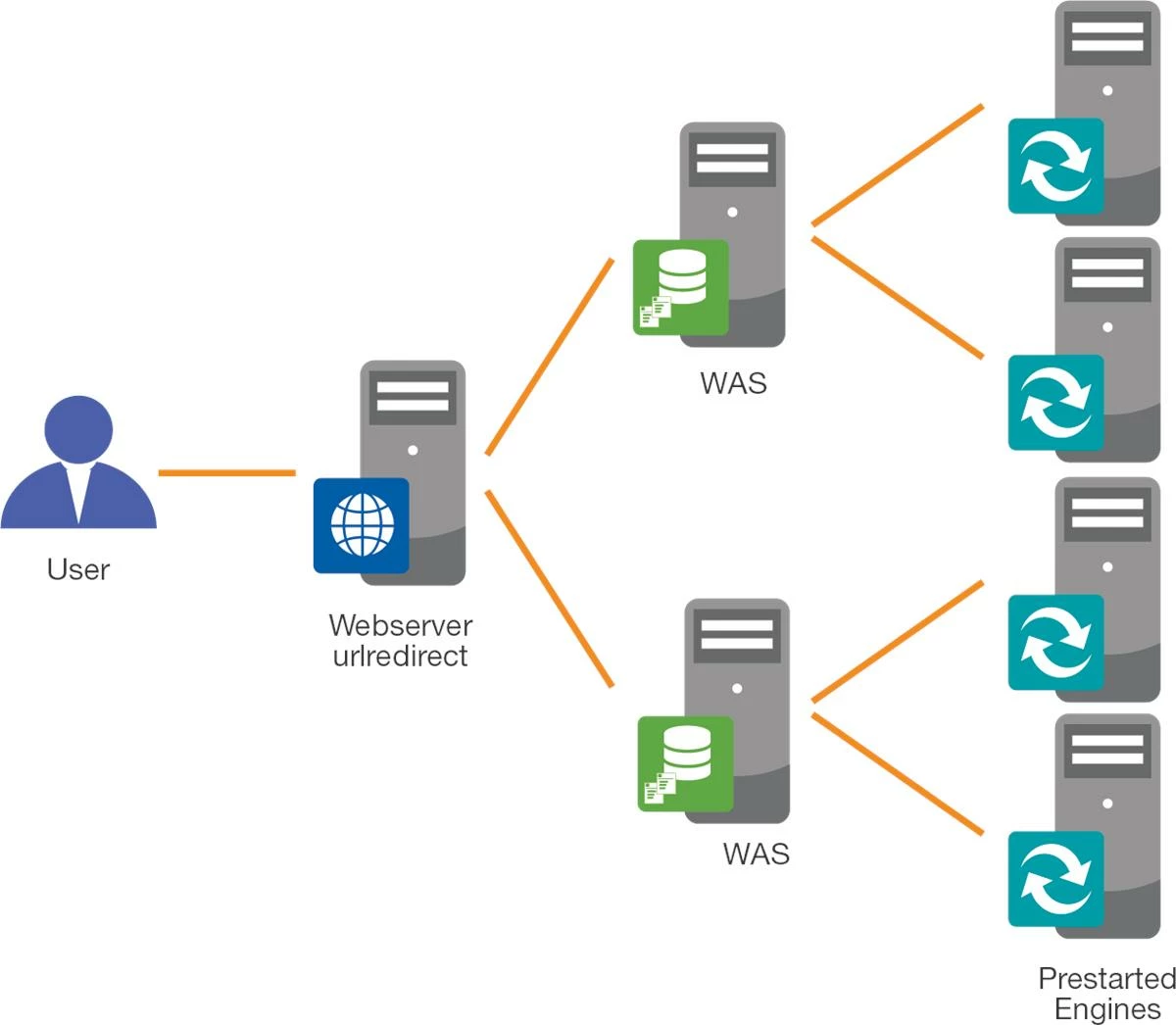 Static load-balancing: If you have a small number of users, start the Web engines and the Web application server in advance. Then to make sure that each connection request is routed to a specific Web engine, specify the address and/or the port of the endpoint in the URL or in the initial web page.