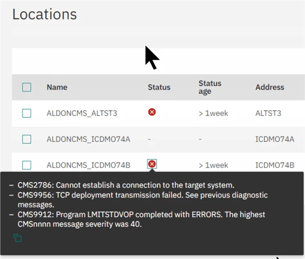 From the new RDOp Home, can review the new RDOi-Service features for the Deployment Receiver Locations that are defined in LMi (Menu 6 Deployment, option 12 Locations).Â