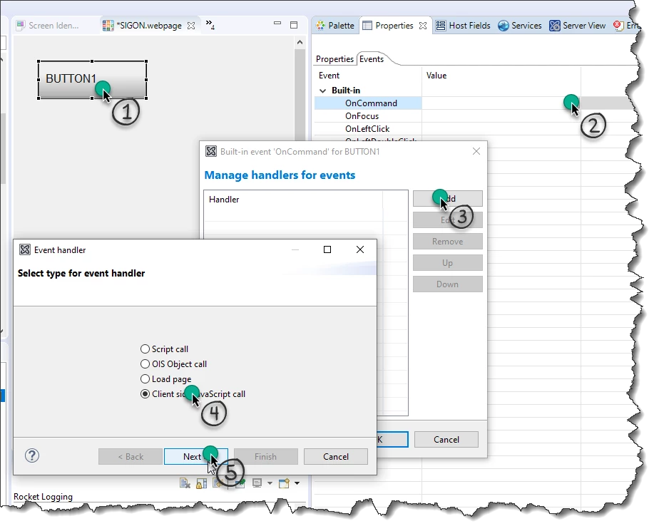 Next step is to bind the JavaScript to a button.As example we will bind this to a button on a panel, on the OnCommand event: