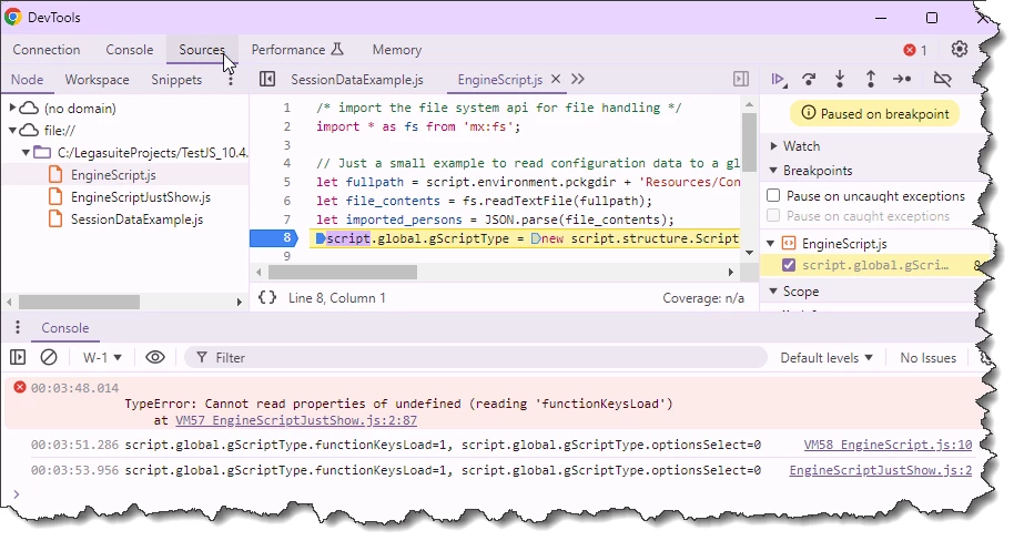 The following can be added to the INI file of the engine (LegaSuite.ini) to enable the debugging framework of the engine.