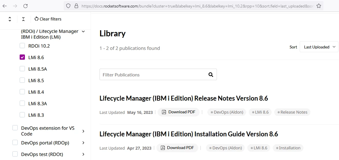 I'm new to Aldon and need to download manuals of Life Cycle Manager IBM i Edition 8.6 to study. I found only manuals for Rocket DevOps 10 on Rocket's web site. Are manuals of LMi 8.6 still available for download? If so, I would appreciate any pointer to download URL.