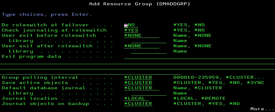 Does this mean that I explicitly specify the default database journal name rather than *CLUSTER in DMADDGRP command ?