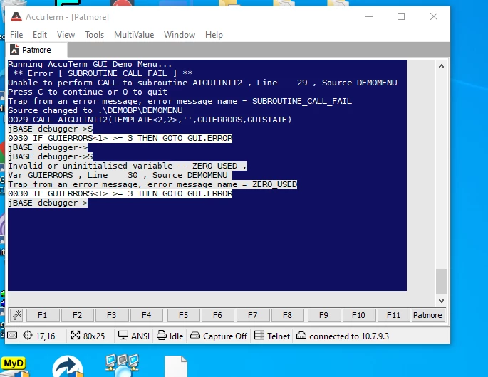 They wish to push forward now. I have downloaded AccuTerm 8 trial and installed the system and Updated the Host Services, also installing the DEMO MENU hoping that I would at least start to gain understanding from that but it failed immediately