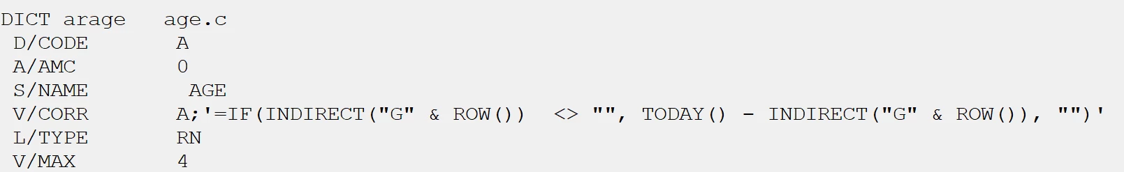 Here is the proc and dict item I am using. I have attached the resulting xlsx file. The formula in column A is not overlaid by my proc so that is my current work around. Column I 'age.c' is where the dict item is not interpreting the formula in the a-correlative.