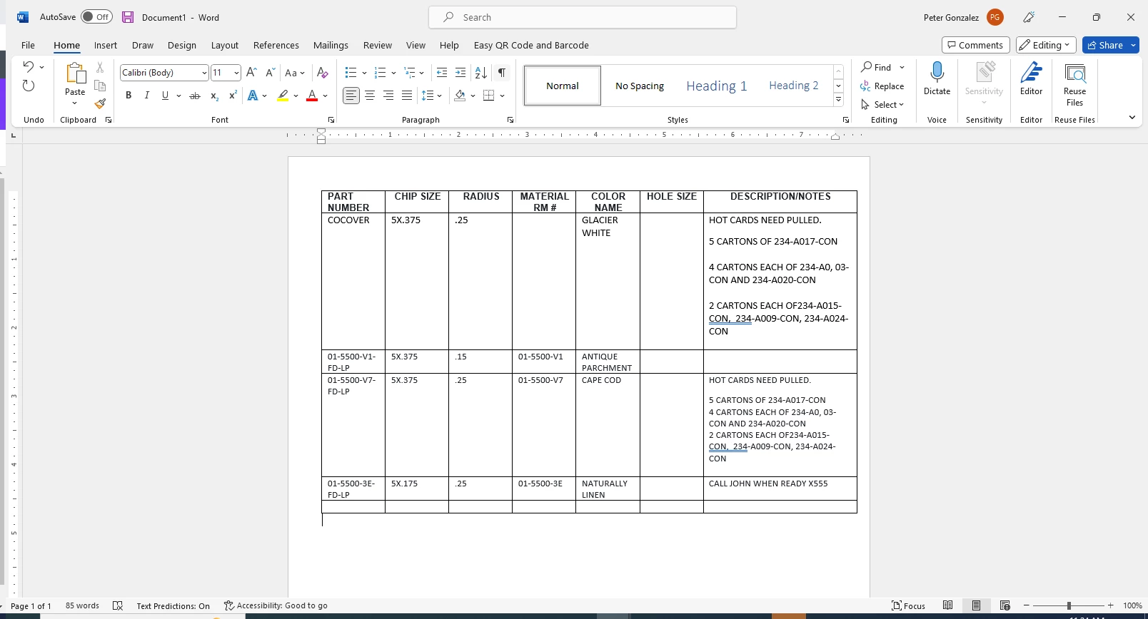 4 CARTONS EACH OF 234-A0, 03-CON AND 234-A020-CON