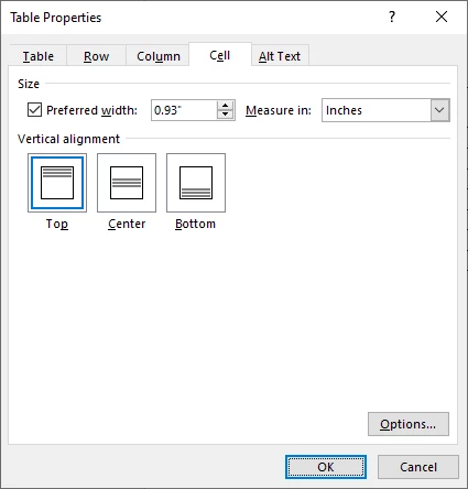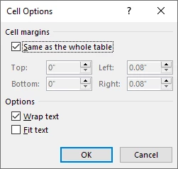 To accomplish this go to the Table Properties, then Cell tab, then Options and then check on the Wrap Text box.