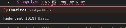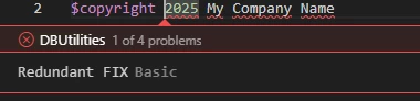 Anyone else getting spurious lint on the $copyright compiler directive?