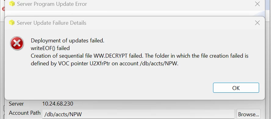 The BDT launches but fails to update the subroutines. I set permissions on the folder to /usr/ibm/uv/BP.O to write for everyone but it still fails.
