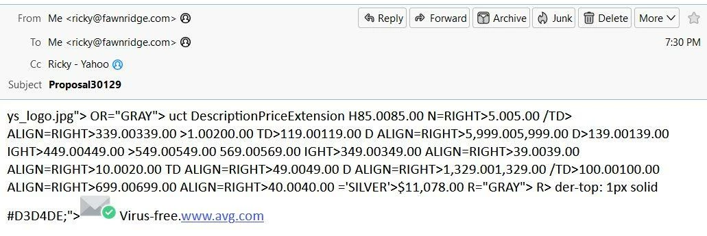 Attached you'll see two jpgs of the same file generated by my software using D3 Linux 10.3 and Accuterm 7. The bottom file was received by the Thunderbird email client. The top file was received by the Yahoo email client. The Thunderbird client and another MS product have also received the files as Chinese characters. The actual file that my software generates and then emails in the body of the email is the Yahoo file.