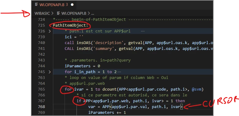 IndentLevel := the list of nested indent 'word' ... for, if, loop, if with first next word ... in sample WIBASIC > WI.OPENAPI.B > PathItemObject: > for ivar > if APP