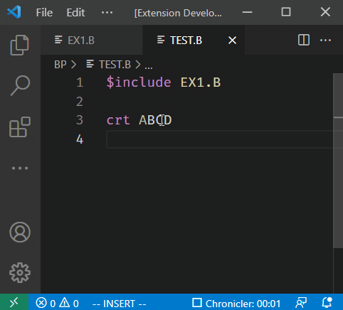 Hi Yunpu, I cannot get the INCLUDE to be recognized. According to the instructions, to define the INCLUDE files you must define the account. When I attempt to define the account "path" using a standard Windows path, Visual Studio Code thinks I am escaping the characters and removes the backslashes. (ie: "c:\\User\\bob\\Documents"). How do I point to a directory on my local pc?