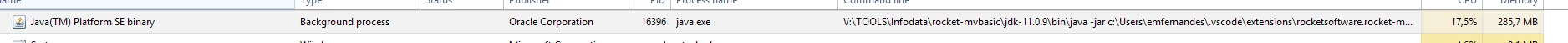 When coding I note a high usage of cpu (17% ) by java running rocket-mvbasic.