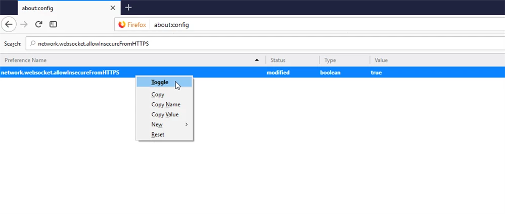 Right click on this setting and click ‘Toggle’. The value should now be ‘True’