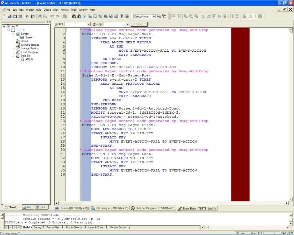 We just received our 8.0 version and have started testing it with our previous projects (done in 6.2). So far we have seen no issues with converting old projects in to the new 8.0 framework. Has anyone else seen any areas of concern about converting projects to 8.0?Once question that has come up is the Drag and Drop feature in 8.0. We have been playing with it and some times it creates code in the event paragraph that we can edit and other times it does not (puts the code in the prd file). Has anyone found this and if so how have you fixed it so that it always generates the code in the event paragraph (so that it is editable)?