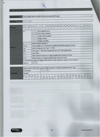 I have to send the commands R (read) and PID (calibrated weight) and then read the answers.
