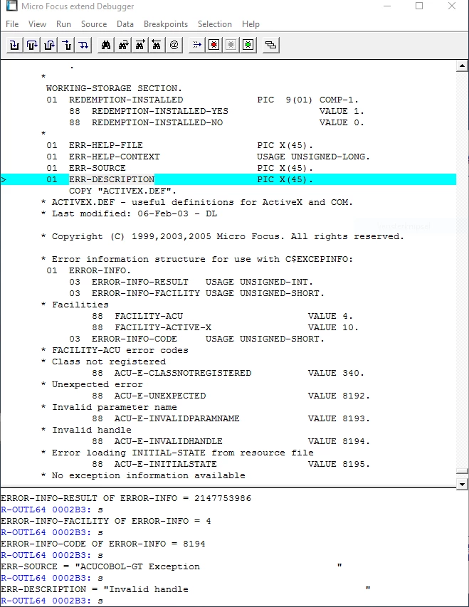 Before I start the Cobolprogram, Outlook is already running. When Outlook not is already running, the error's below are the same.