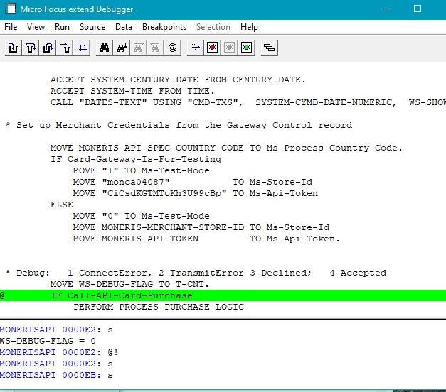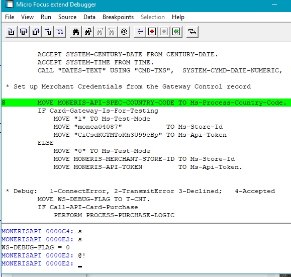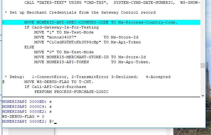 Attached Clip3 - clicked on prior statement MOVE MONERIS-API … and issuing about to enter "@!"