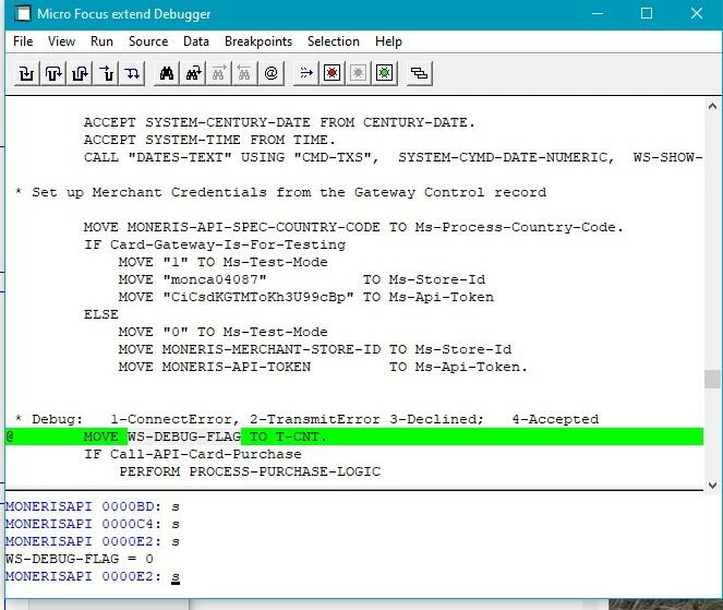 I have ne release of 10.3.0 installed and the "@!" command in debug does not work. After issuing it on a given cobol statement, the program just continues on from where it initially stopped at my breakpoint.