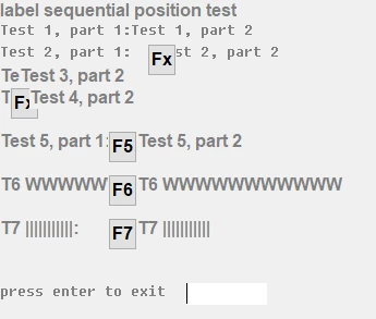The text interface has the cursor concept and back-to-back strings display right after each other. Even in thin client. But display a label and the cursor does not update. I have a sample program I put into labelposn.zip and attached (source and object - version 10.2.1) which illustrates cursor positioning and display of controls. Basically, it does not work.