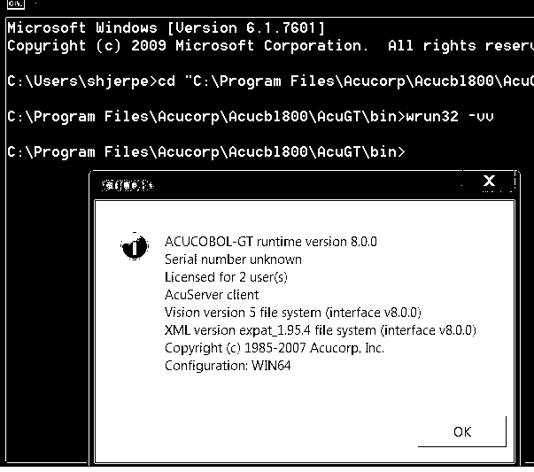 Sometime ago, we post about a problem in our installation CD of acucobol runtime 64 bits v8.0.0. Here is the link community.microfocus.com/.../5958.aspx we are looking again to solve the problem, because the option of copying the folder after install using the setup not works well. When the runtime executes, we get an error of no license archive found. The text of our license says this: