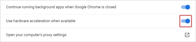 For instance, to disable hardware acceleration in the Chrome browser, follow these steps: