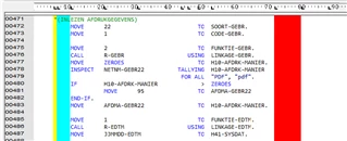 In Overwrite mode OVR on an existing cobol line, starting on column 1 the tab goes to 7, 13, 25, 49 and after last character.