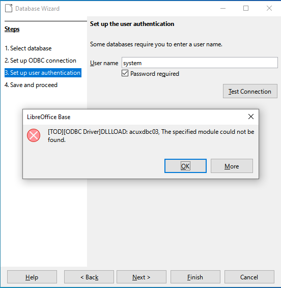 ""[TOD][ODBC Driver]DLLLOAD: acuxdbc03, The specified module could not be found.""