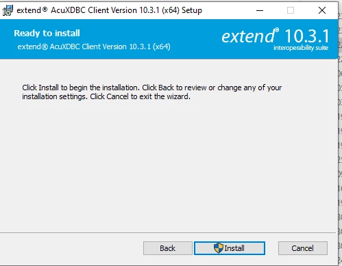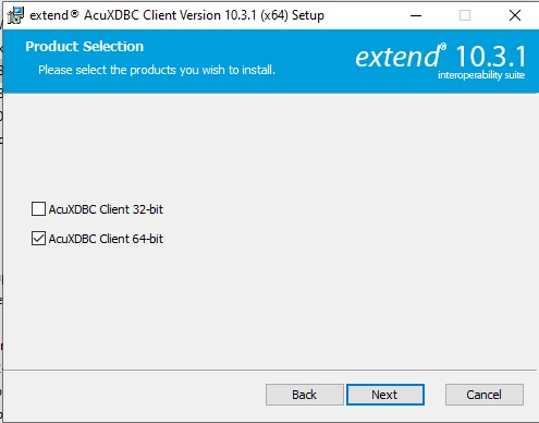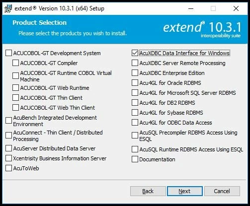 To have all the correct libraries for the AcuXDBC client driver, "AcuXDBC Data Interface for Windows" must be selected.