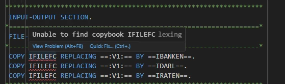 #ChangeManZMF#Copybookresolvement#VSCode#include#ZMFExplorer#COPYBOOKS#ZMF#VSCodeHave you confirmed that the copybook files have been downloaded into the correct folder and with the correct file suffix?