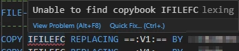 Also provide the full screen shot of the actual error message - as it appears to be cutt off with "Unable to find copybook file" and the word lexing.