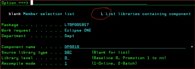 When we Recompile a src member in TSO, it allows us to use the "List Library containing component" option. This lists all the promotion libraries where the component resides and we can choose right there from where we want to recompile.