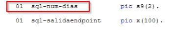 Otherwise, you can right-click on sql-num-dias and select Properties and take note of how CA captures and parses this field, especially in comparison to how it does it for sql-salidaendpoint. Then modify the criteriion as needed to ensure it returns sql-num-dias.
