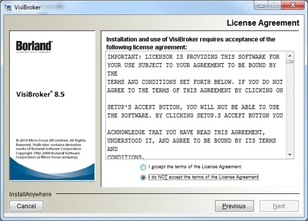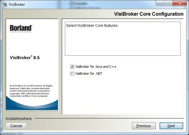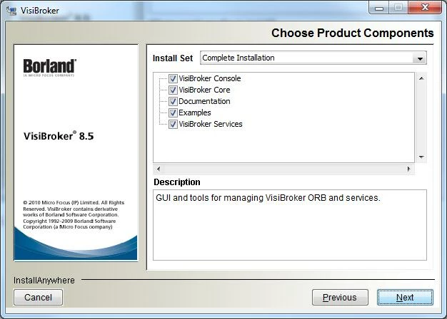This article explains the pre-requisites & the steps to install and register VisiBroker 8.5 installation in GUI mode in supported windows operating systems. The VisiBroker 8.5 supported platforms can be referred here: http://supportline.microfocus.com/supportresources/VB85prodmatrix.aspx.