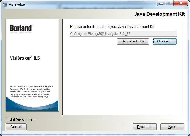 3. You need to install JDK first. Please note that if you are choosing 32-bit version of VisiBroker 8.5, then you need to install 32-bit JDK. If VisiBroker installation is 64-bit, then JDK has to be 64-bit.
