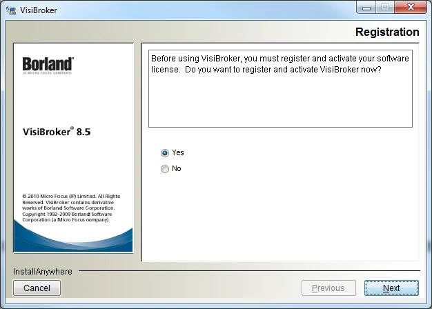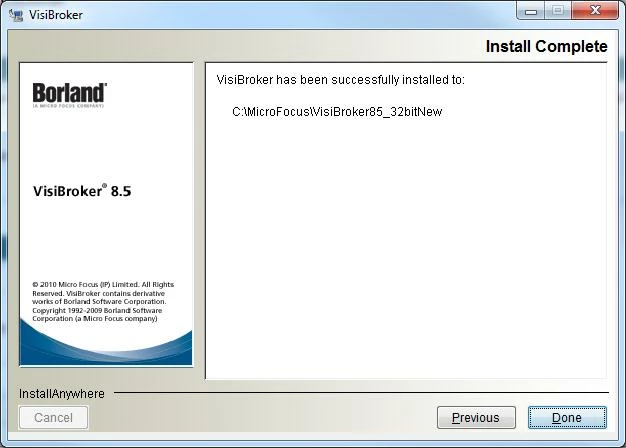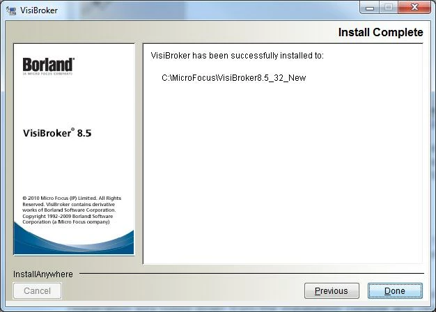 You have now installed and registered VisiBroker successfully either with direct internet access or registering using web option.