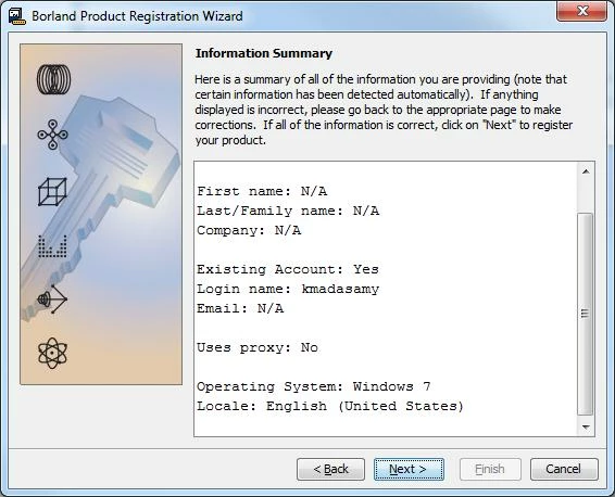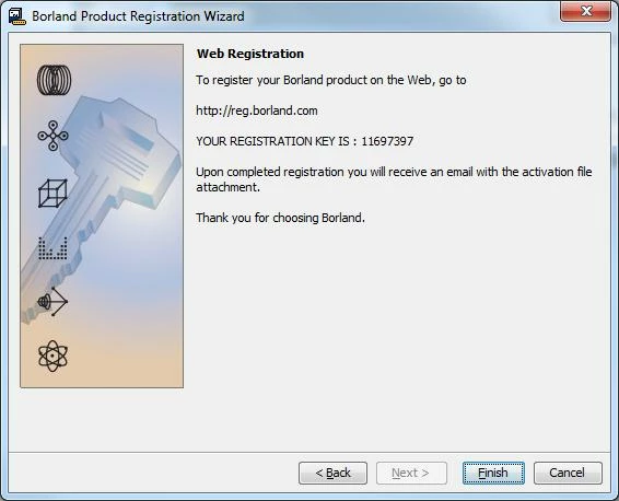 31. Check your email. You should receive an email with Subject header Borland Product Registration. In that email, you will be receiving an attachment named reg*.txt.