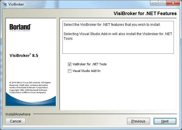 7. Next step, you need to choose VisiBroker for .NET features that you wish to install.