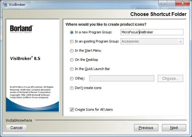 10. Next Step, you can “Choose Shortcut Folder” where you want to install VisiBroker shortcut.