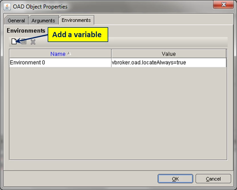 env = (length=1)[vbroker.oad.locateAlways=true; ]