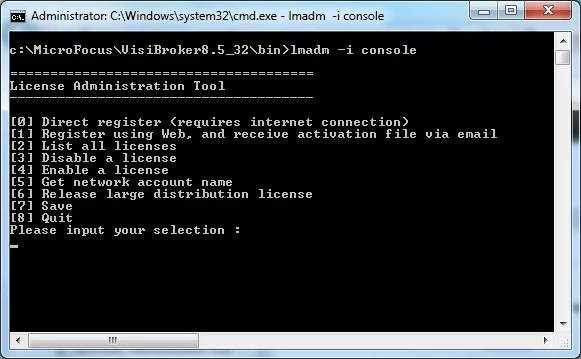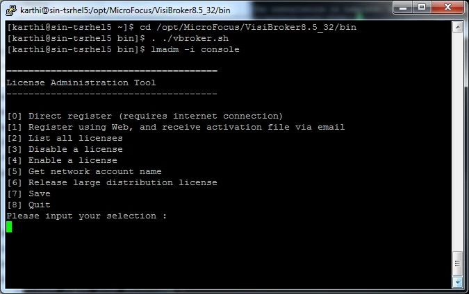 This article explains the pre-requisites & the steps to register VisiBroker in console mode in supported operating systems. The latest VisiBroker version 8.5's supported platforms can be referred here: http://supportline.microfocus.com/supportresources/VB85prodmatrix.aspx.