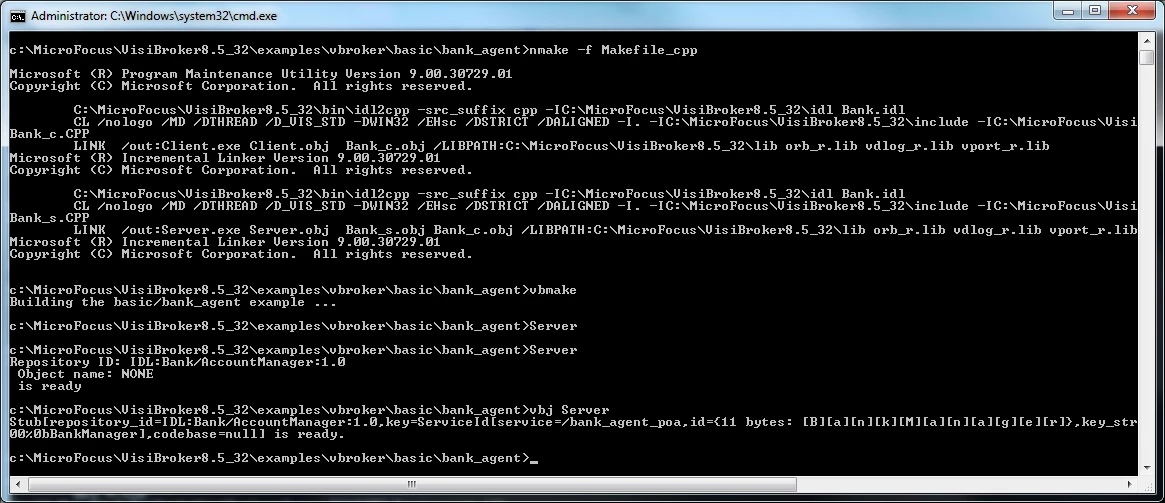 4. Go to <VBROKERDIR>/examples/vbroker/basic/bank_agent example folder to compile and run the server to verify if the installation has been installed properly.