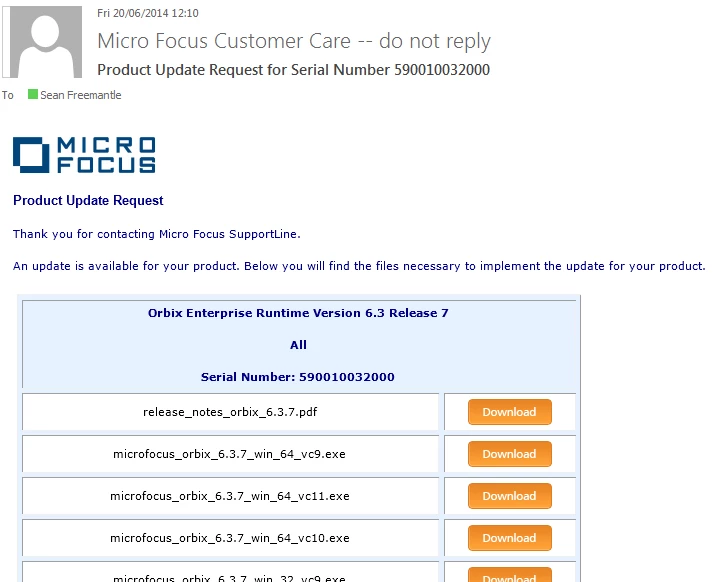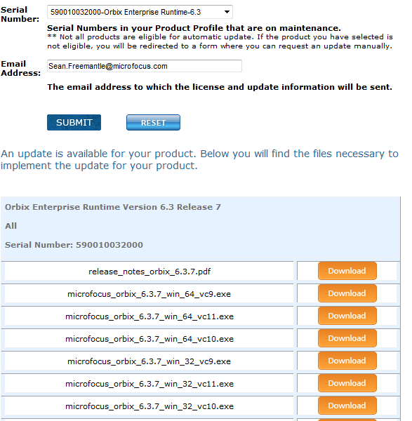If any issues are encountered during this process please raise a case with our Technical Support team to ensure the latest version of Orbix 6.3 is made available for download.